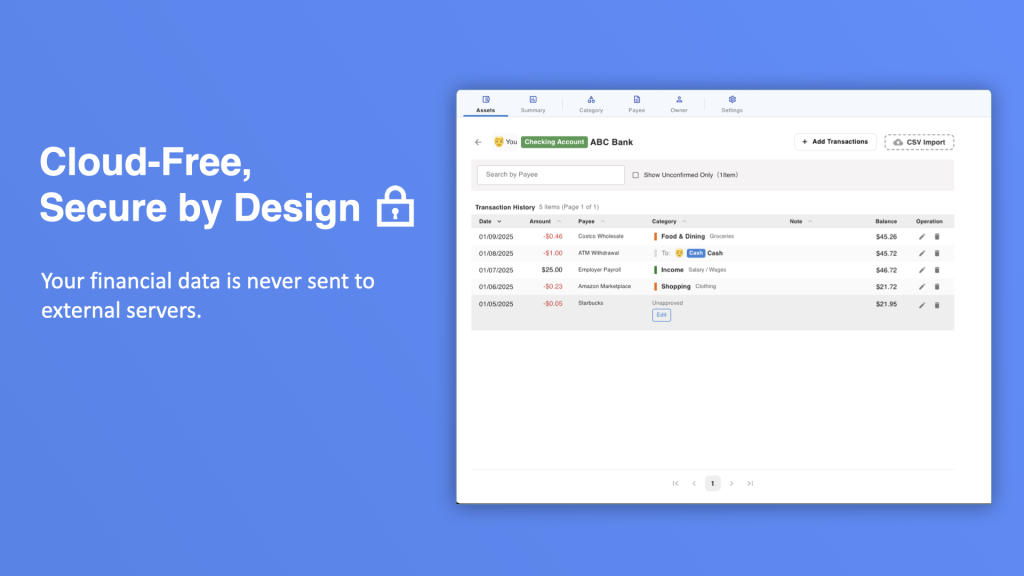 PC-exclusive Personal Finance & Asset Analysis Tool with No Cloud Dependency.