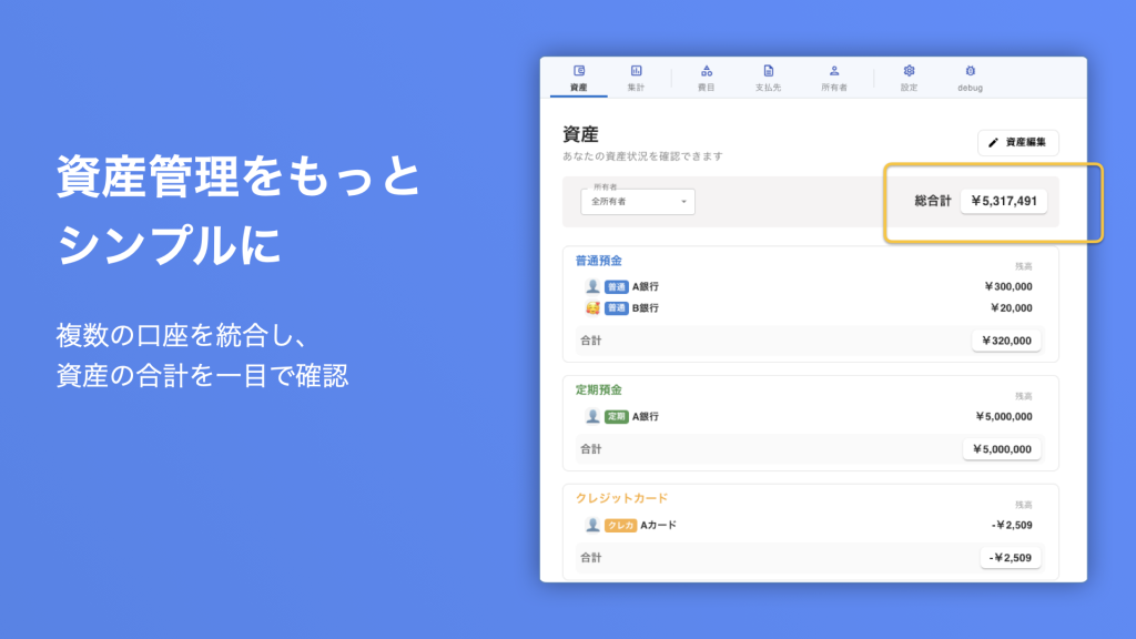 所有者(家族)の資産も管理できます。